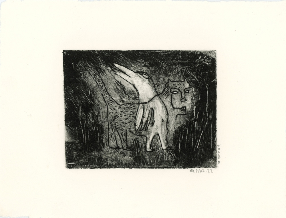 Gravure originale (eau forte) - tirage unique Format dessin : 10 x 7 cm Format papier : 16,5 x 12,5 cm / papier BFK Rives